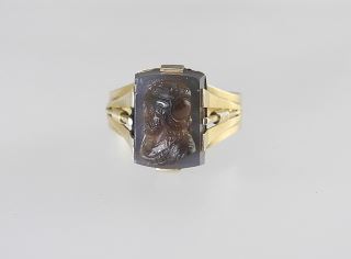Unmarked Gold (tested 14K) with Glass Portrait Cameo, Size 8 1/8, 3.9g.