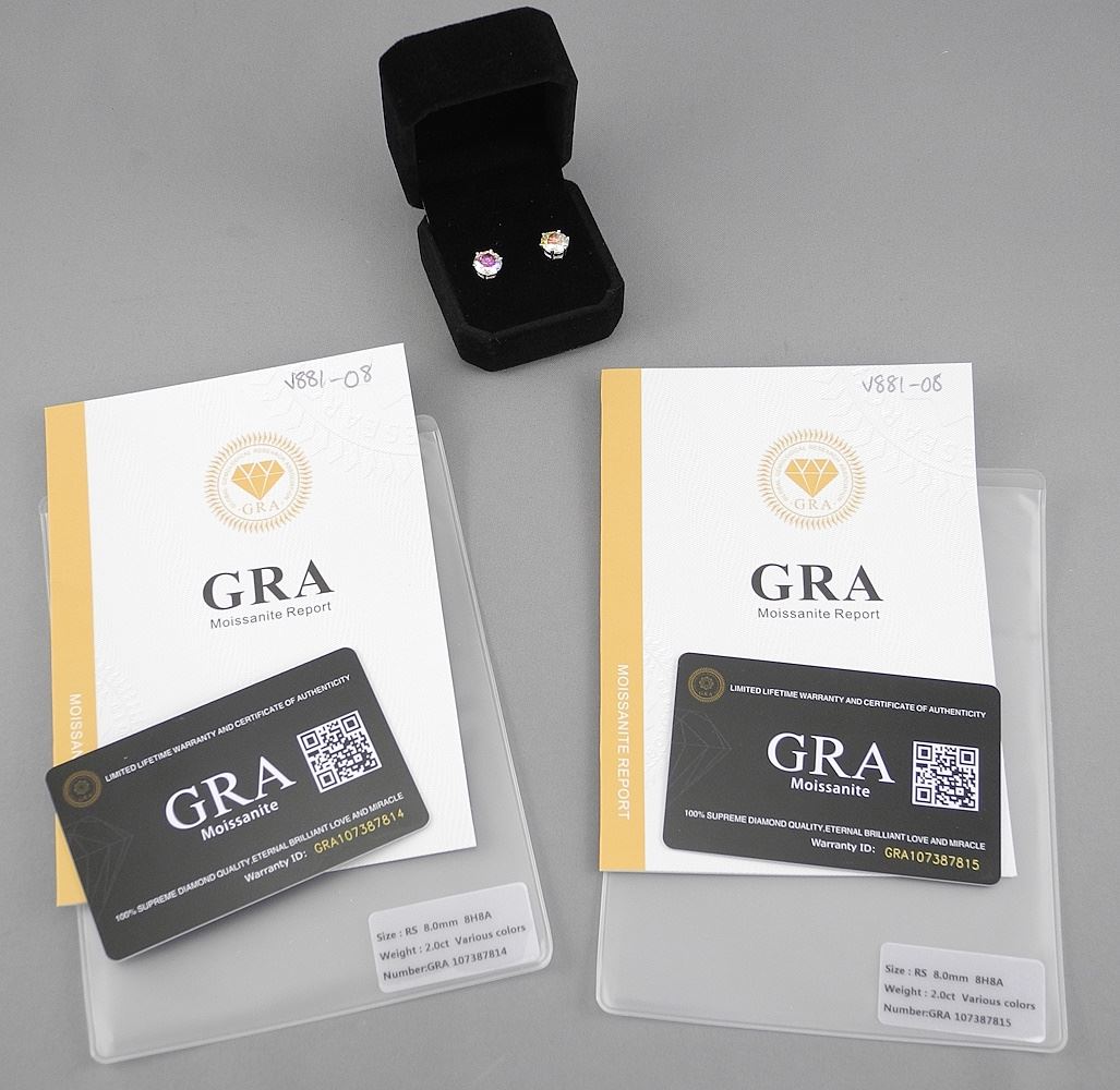 LOT 213 2ct Aurora Moissanite Stud Earrings , Sterling with White Gold Overlay, with Cert. & Box. Estimate: $50 - $100 Sold For: $140 Auction Date: Tuesday, February 11 2025 at 4:00 PM
