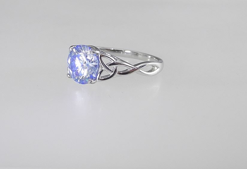 2ct Blue Moissanite Infinity Ring, Size 7, Sterling with White Gold Overlay, with Cert. & Box.
