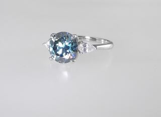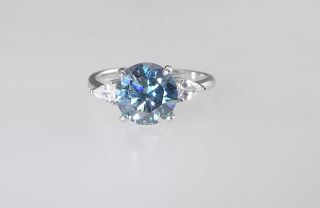 LOT 303 3ct Turquoise Moissanite Trinity Ring, Size 7.5, Sterling with White Gold Overlay, Report & Box Estimate: $50 - $100 Sold For: $35 Auction Date: Tuesday, February 11 2025 at 4:00 PM