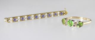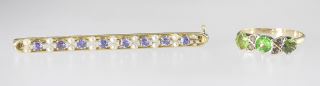 14K (marked) Gold Pearl & Topaz Brooch (2"L/5.4g), & 10K Ring, 2.4g (missing stone).