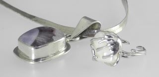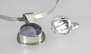 LOT 234 Mid Century Amethyst, Pearl & Sterling Pendant / Necklace (18") & Ring., TW 25.3g. Estimate: $60 - $100 Sold For: $50 Auction Date: Tuesday, February 11 2025 at 4:00 PM
