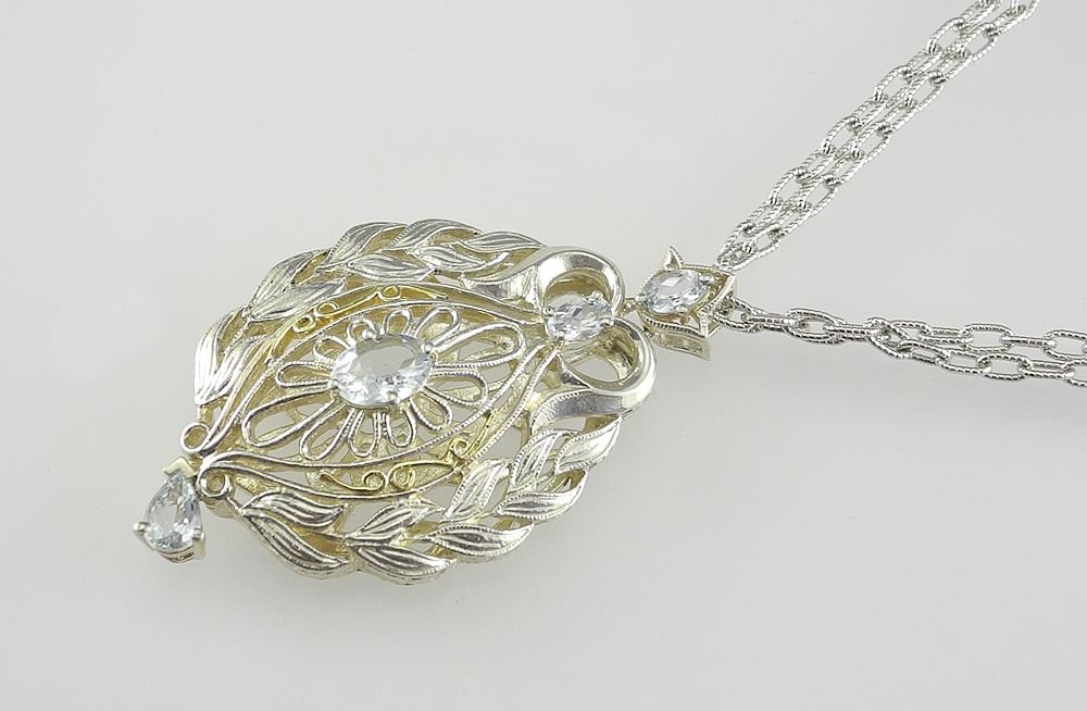Silver & White Gold (marked) & Blue Topaz Necklace, 17"L, 21.7g.