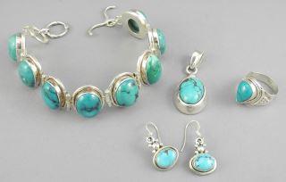 LOT 108 Sterling Silver (marked) & Turquoise Demi-Parure, Size 7 1/4, TW 77.3g. Estimate: $100 - $150 Sold For: $130 Auction Date: Tuesday, February 11 2025 at 4:00 PM