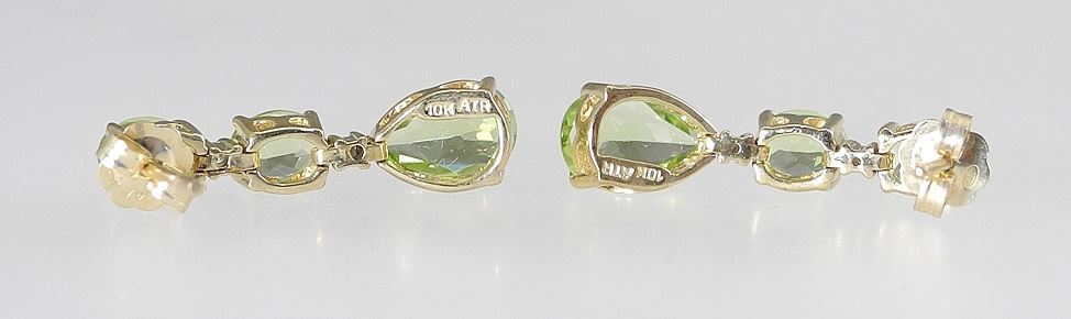 Pair of 10K (marked) Yellow Gold Peridot & Diamond Earrings, 2.8g.