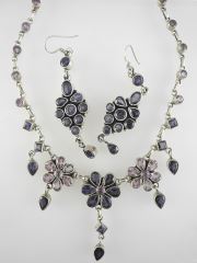 Artisan Sterling Silver (marked) Iolite & Amethyst Necklace & Earrings, 38.6g.