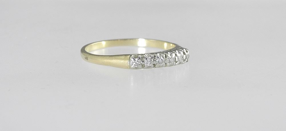 Unmarked Gold Tone Ring with Six Channel Set Diamonds, Size 9 1/4, 2.1g.