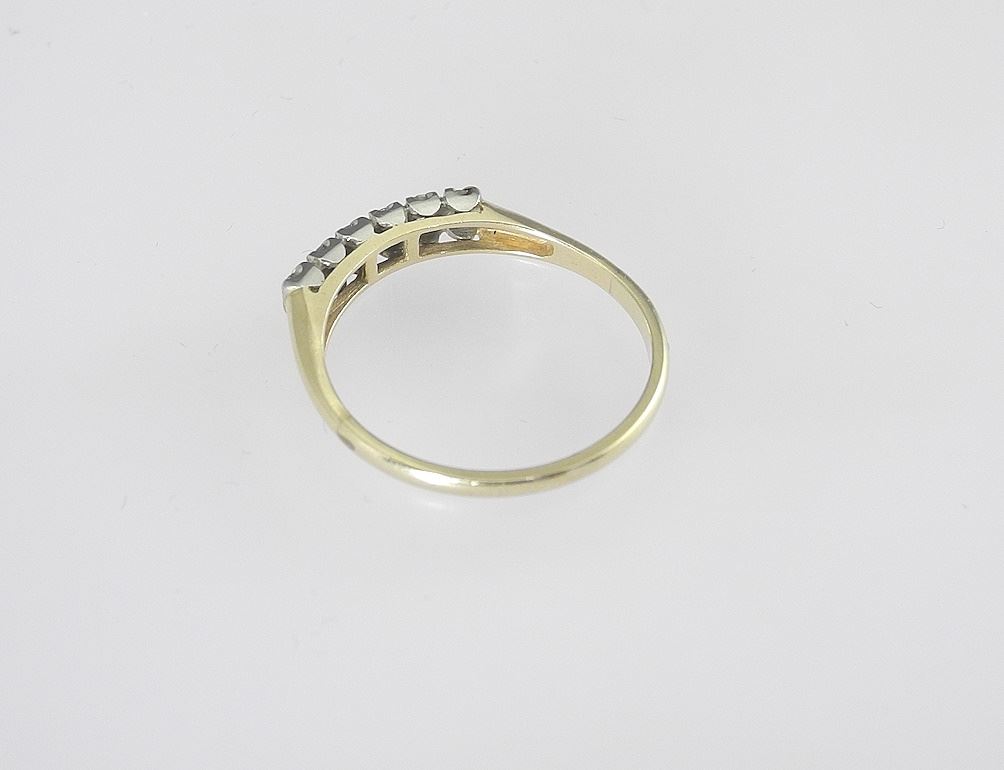 LOT 145 Unmarked Gold Tone Ring with Six Channel Set Diamonds, Size 9 1/4, 2.1g. Estimate: $100 - $150 Sold For: $90 Auction Date: Tuesday, February 11 2025 at 4:00 PM