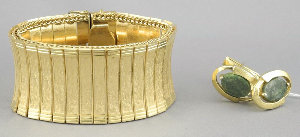 Three Gold Plate Jewelry Items: Grosse 49" Chain / 7" Cuff Bracelet / Senator Jade Cuff Links.