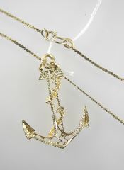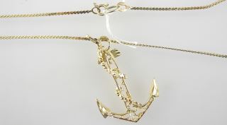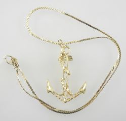 LOT 179 10K (marked) Yellow Gold Necklace with 10K Anchor Pendant, 13"L, TW 4.5g. Estimate: $150 - $200 Sold For: $180 Auction Date: Tuesday, February 11 2025 at 4:00 PM
