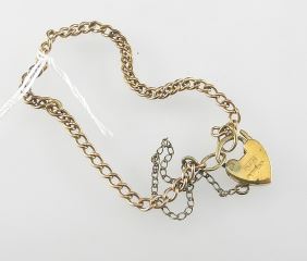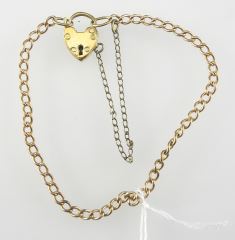 9ct Hallmarked Rose Gold Sweetheart Clasp Bracelet, 5"L, 2.7g.