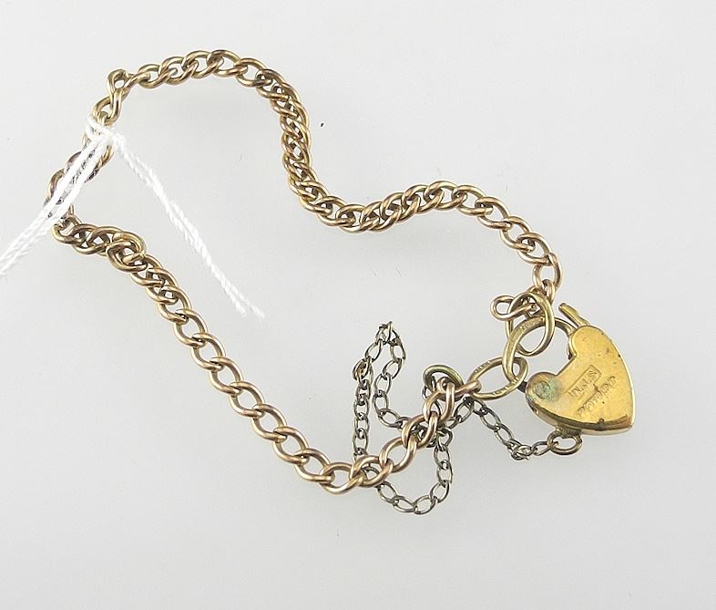 LOT 175 9ct Hallmarked Rose Gold Sweetheart Clasp Bracelet, 5"L, 2.7g. Estimate: $80 - $100 Sold For: $90 Auction Date: Tuesday, February 11 2025 at 4:00 PM