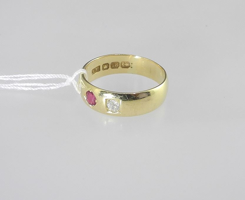 LOT 19 18K Hallmarked Gold Ruby & Diamond Band, Size 6 1/2, 4.0g. Estimate: $250 - $350 Sold For: $350 Auction Date: Tuesday, February 11 2025 at 4:00 PM