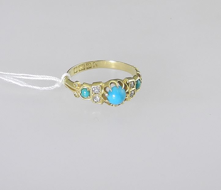 18K Hallmarked Turquoise & Diamond Ring, Size 6, 2.3g.