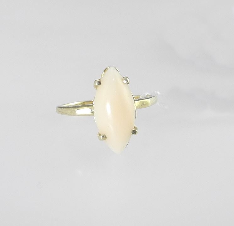14K (marked) Gold & Coral Lozenge Ring, Size 6, 2.35g.