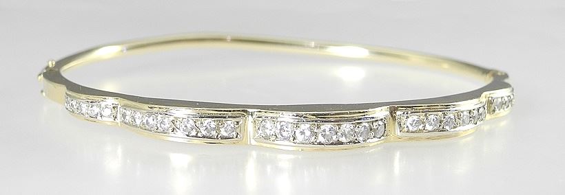 14K (marked) Yellow Gold & Diamond Hinged Bracelet, 2 3/8"w, 11g.