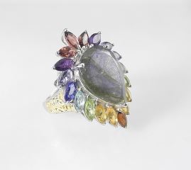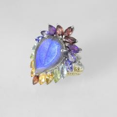 LOT 138 Sterling Silver (marked STS 925) Laborite & Semi-Precious Stone Ring, Size 7, 8.7g. Estimate: $100 - $200 Sold For: $100 Auction Date: Tuesday, February 11 2025 at 4:00 PM