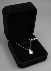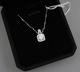 LOT 206 1c Lab Created White Sapphire Halo Necklace (15") Mounted in Sterling Silver & White Gold Overla Estimate: $50 - $100 Sold For: $35 Auction Date: Tuesday, February 11 2025 at 4:00 PM