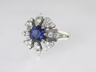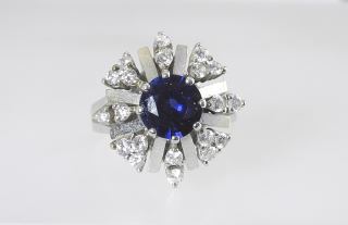 14K White Gold 2.68ct Sapphire Solitaire & Diamond Ring.
