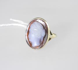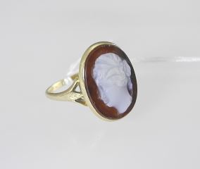 LOT 162 14K (marked) Gold & Glass Cameo Ring , Size 4 1/4, 3.7g. Estimate: $200 - $300 Sold For: $140 Auction Date: Tuesday, February 11 2025 at 4:00 PM