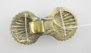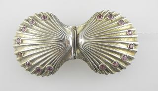 LOT 180 Double Clamshell & Gemstone Buckle, signed with Crown / Sterling with Plated Clasp, 2 5/8", 17g. Estimate: $80 - $120 Sold For: $90 Auction Date: Tuesday, February 11 2025 at 4:00 PM