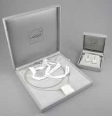 LOT 2 Lalique "Masque de Femme" Crystal Pendant & Earrings set in Sterling Silver , with Boxes. Estimate: $400 - $600 Sold For: $750 Auction Date: Tuesday, February 11 2025 at 4:00 PM