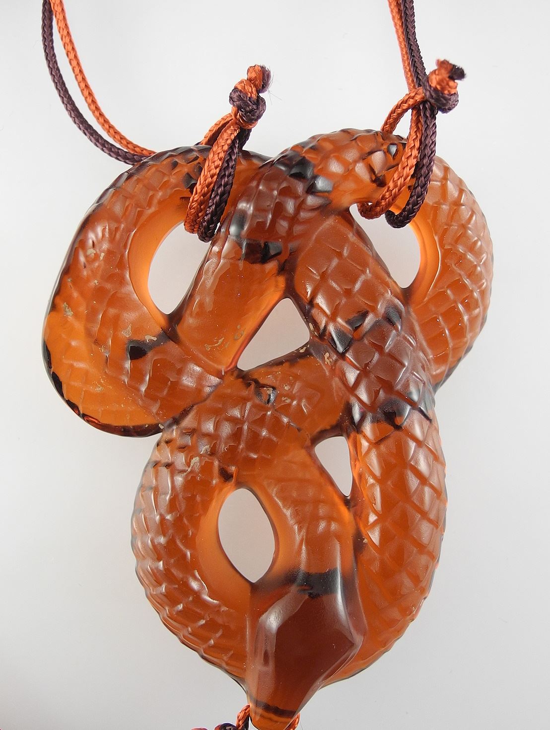 LOT 4 Lalique "Serpent Rouge" Crystal Pendant (2 7/8") on Card. Estimate: $300 - $500 Sold For: $275 Auction Date: Tuesday, February 11 2025 at 4:00 PM