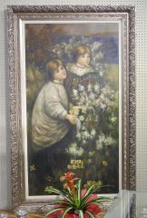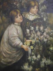 LOT 8 Unsigned Oil on Canvas, 64 1/2 x 34 1/2", "Two Girls in a Garden Setting ". Estimate: $200 - $300 Auction Date: Tuesday, February 11 2025 at 4:00 PM