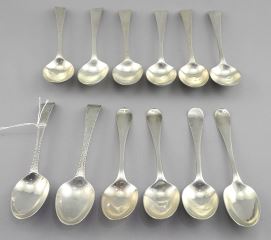 LOT 289 Twelve Various Georgian Silver Teaspoons, Faintly Marked, Approx. 165g. Estimate: $120 - $150 Sold For: $150 Auction Date: Tuesday, February 11 2025 at 4:00 PM