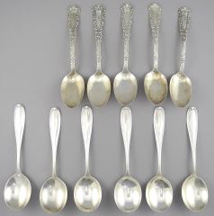 LOT 228 Eleven Sterling Silver Spoons (5 + 6 ), 6 3/4 - 6 7/8"L, 474g. Estimate: $300 - $400 Sold For: $410 Auction Date: Tuesday, February 11 2025 at 4:00 PM