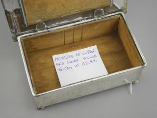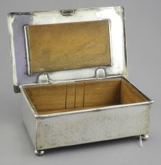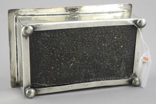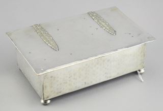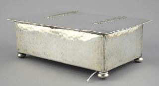 LOT 29 22.8% Silver Alloy Box, 2 1/4 x 6 3/4 x 4 1/4", 460g. Estimate: $60 - $100 Sold For: $60 Auction Date: Tuesday, February 11 2025 at 4:00 PM