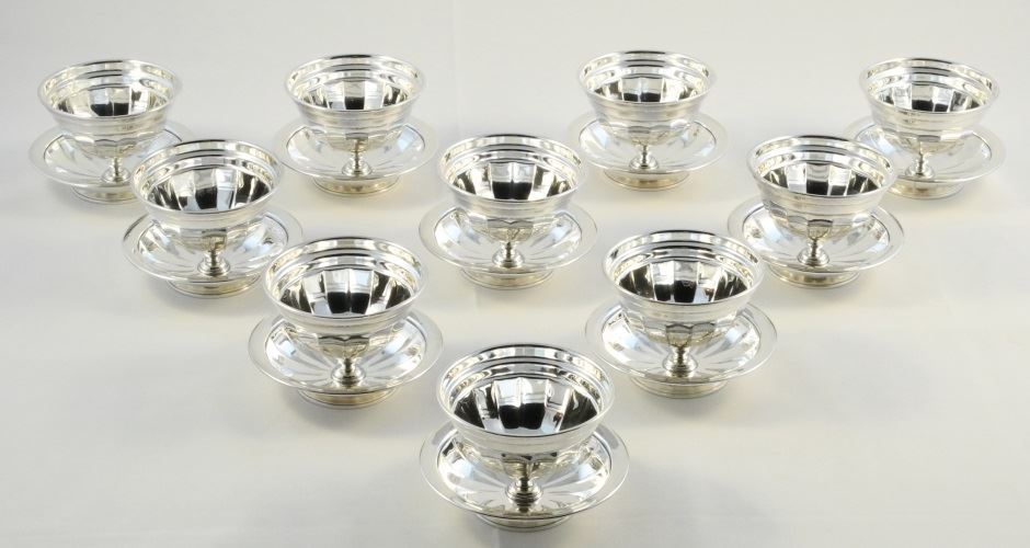LOT 9 Set of 10 Asprey Silver Plated Sherbert Bowls, 5 1/4 Diameter. Estimate: $500 - $750 Sold For: $450 Auction Date: Tuesday, February 11 2025 at 4:00 PM