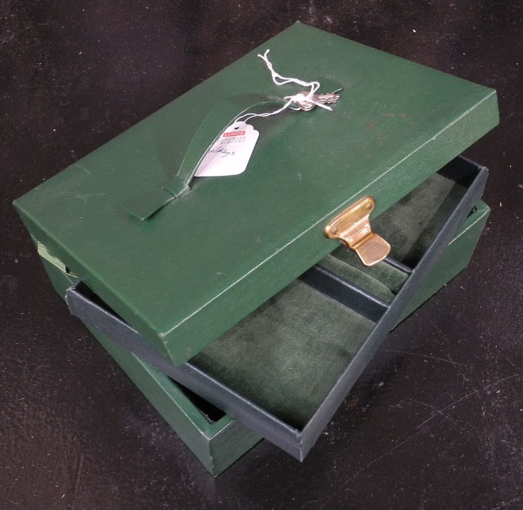 LOT 155 Jenner's Ltd. Edinburgh Green Cloth Jewelry Box. Estimate: $60 - $100 Sold For: $30 Auction Date: Tuesday, February 11 2025 at 4:00 PM