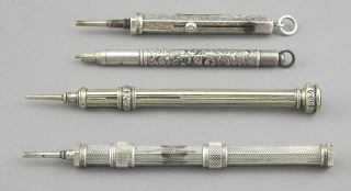 LOT 136 Collection of 3 Plated & 1 Sterling Propelling Pencils Including Mordan & Co., 4 1/4". Estimate: $80 - $120 Sold For: $160 Auction Date: Tuesday, August 12 2025 at 4:00 PM