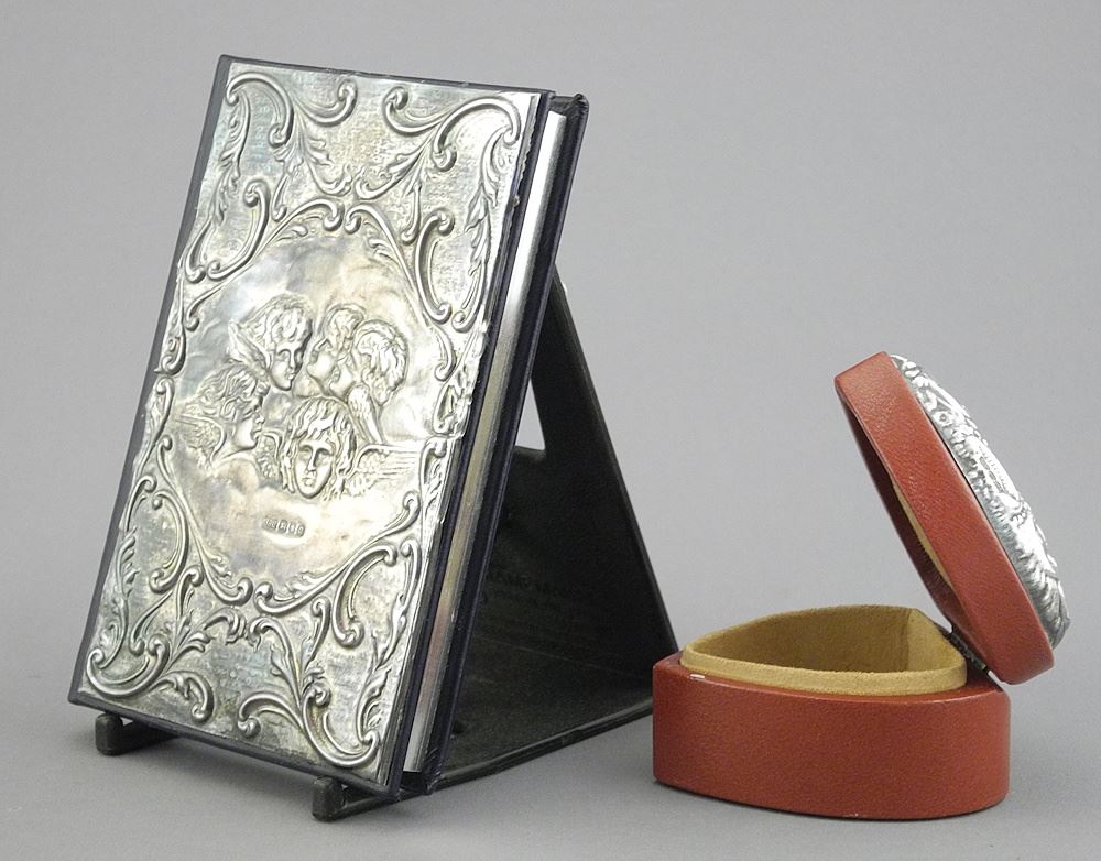 Two Hallmarked Silver Mounted "Cherub Choir" Items: Notebook (4 3/4"h) & Ring Box.