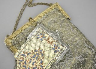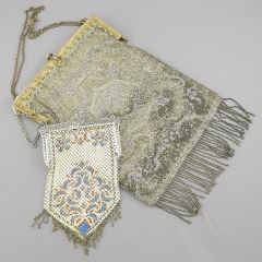 LOT 24 Two Evening Bags: Cut Steel Bead (8 3/8"h) & Enameled Mesh, 6"h. Estimate: $60 - $100 Sold For: $60 Auction Date: Tuesday, August 12 2025 at 4:00 PM
