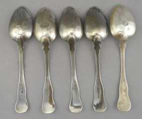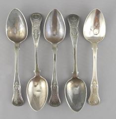 LOT 27 5 Scottish Silver Dessert Spoons, 6 7/8"L, 234g. Estimate: $250 - $350 Sold For: $260 Auction Date: Tuesday, August 12 2025 at 4:00 PM