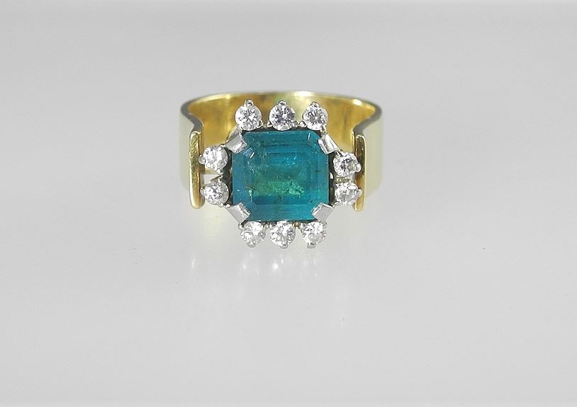 LOT 31 18K (marked) Gold 2.34ct Square Cut Emerald & Diamond Ring, Size 7, 11.3 g. Estimate: $5,000 - $7,500 Auction Date: Tuesday, August 12 2025 at 4:00 PM
