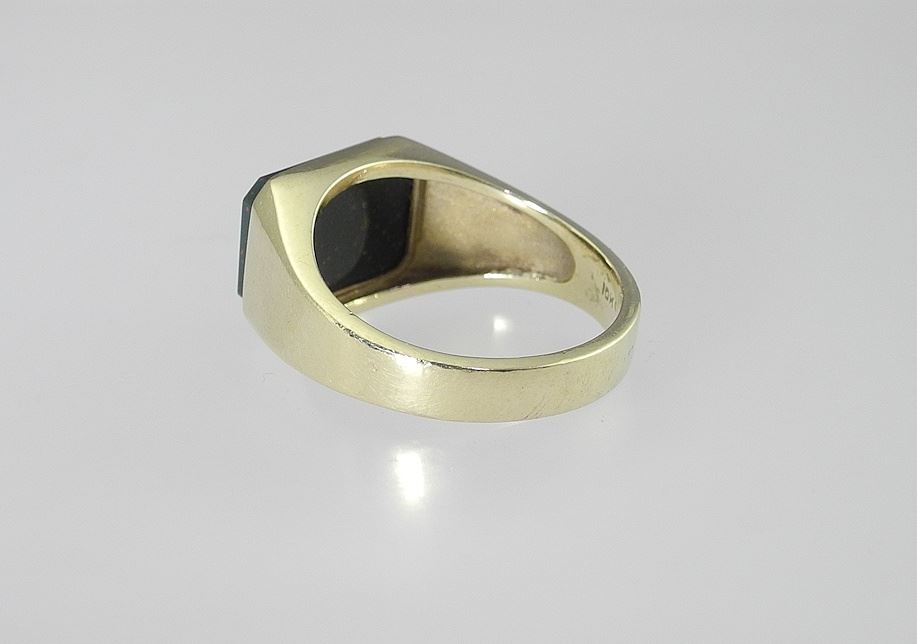 10K (marked) Yellow Gold & Bloodstone Gent's Ring, Size 9 3/4, 6.3g.