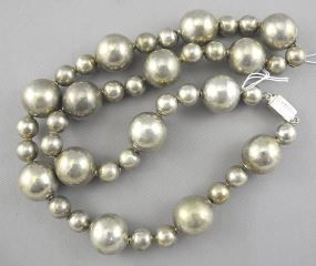 Mexican Silver Coloured Metal Graduated Sphere Necklace, 22"L.