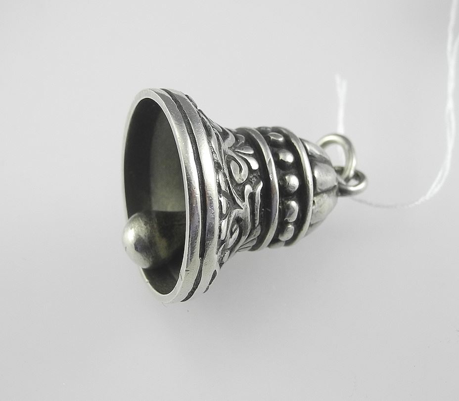 Sterling Silver (tested) Bell Pendant with Remnant Holt Renfrew Tag, 1 3/8"h, 22.8g.