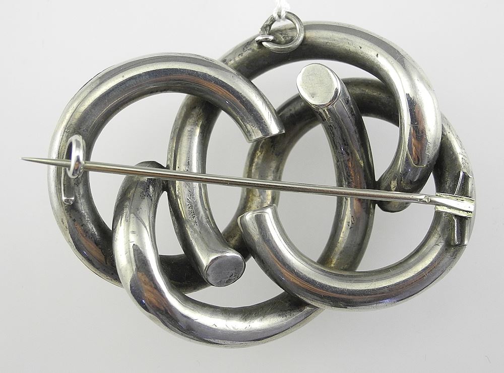 Victorian Silver (unmarked) & Agate Scottish Knot Brooch, 2 3/8"w, 26.3g