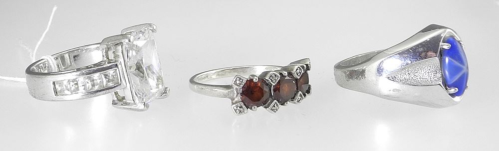 Three Sterling (marked) Silver Rings Sizes 12 / 8 1/4 / 7 1/2".