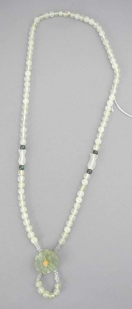 Chinese Carved Jade Beaded Pendant/ Necklace, 22"L.
