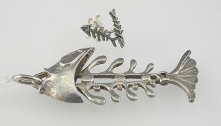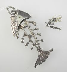 LOT 243 900 Silver (marked) "Fishbones" Pendant (2 1/4"h, 9.7g) with Similar Earrings, 0.8g. Estimate: $60 - $100 Auction Date: Tuesday, August 12 2025 at 4:00 PM