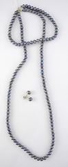 Iridescent Pearl Necklace & Bracelet & Earrings with 14K (marked ) Clasps, 7 & 17"L.