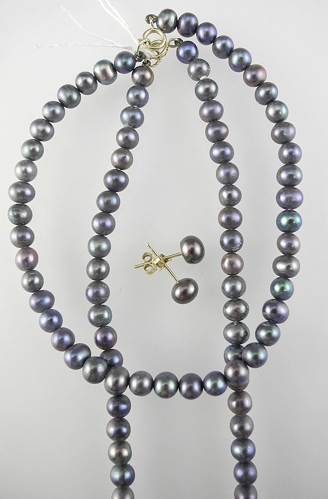 LOT 265 Iridescent Pearl Necklace & Bracelet & Earrings with 14K (marked ) Clasps, 7 & 17"L. Estimate: $60 - $100 Sold For: $80 Auction Date: Tuesday, August 12 2025 at 4:00 PM