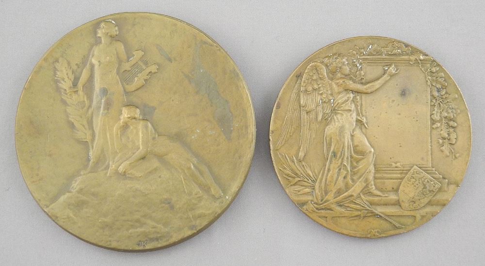 LOT 241 Two Bronze Medallions: Rudyard Kipling (3"diam.) & Hendrik Prins D. Ned., 2 1/2" Diameter. Estimate: $60 - $70 Sold For: $30 Auction Date: Tuesday, August 12 2025 at 4:00 PM