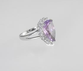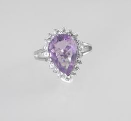 Sterling (marked 925) Silver Amethyst & White Topaz Ring, Size 8, 5.2g.