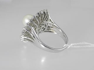 LOT 85 Sterling (marked 925) White Topaz & Pearl Ring, Size 9 1/4, 8.5g. Estimate: $50 - $70 Auction Date: Tuesday, August 12 2025 at 4:00 PM